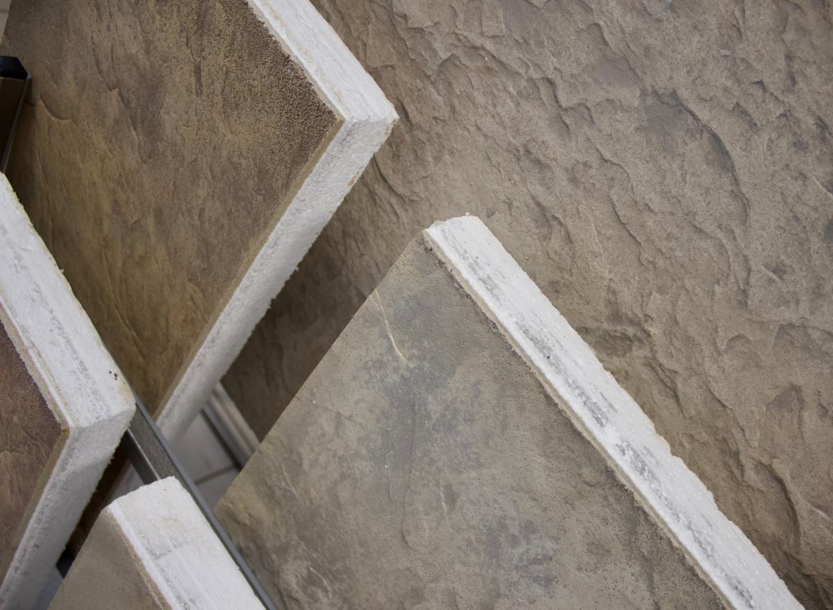 Термопанель бежевая (травертин). Гладкая текстура натурального камня 900×600×50 мм. Утепление + фасад в одном решении. Экономия на отоплении до 40%.